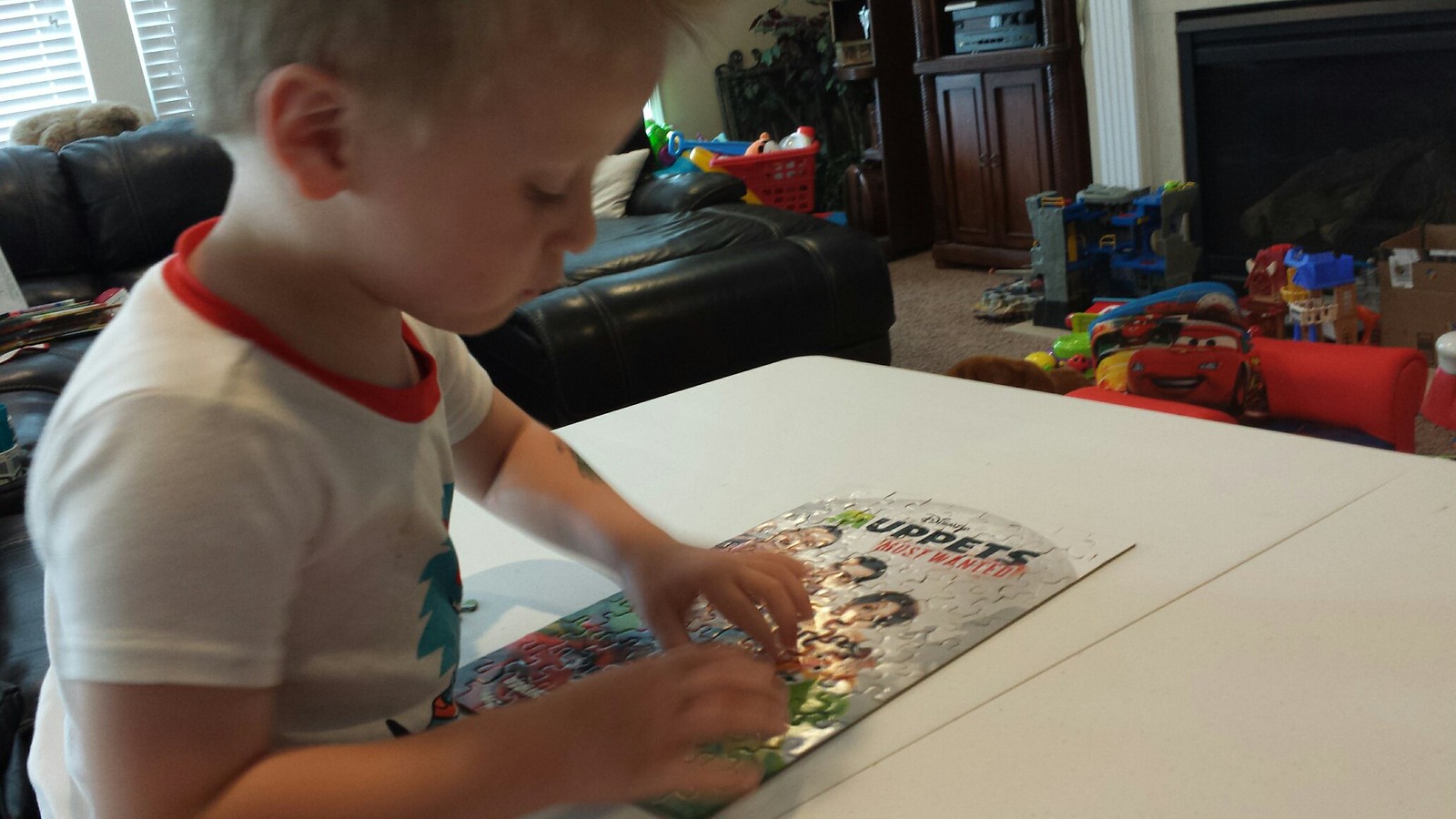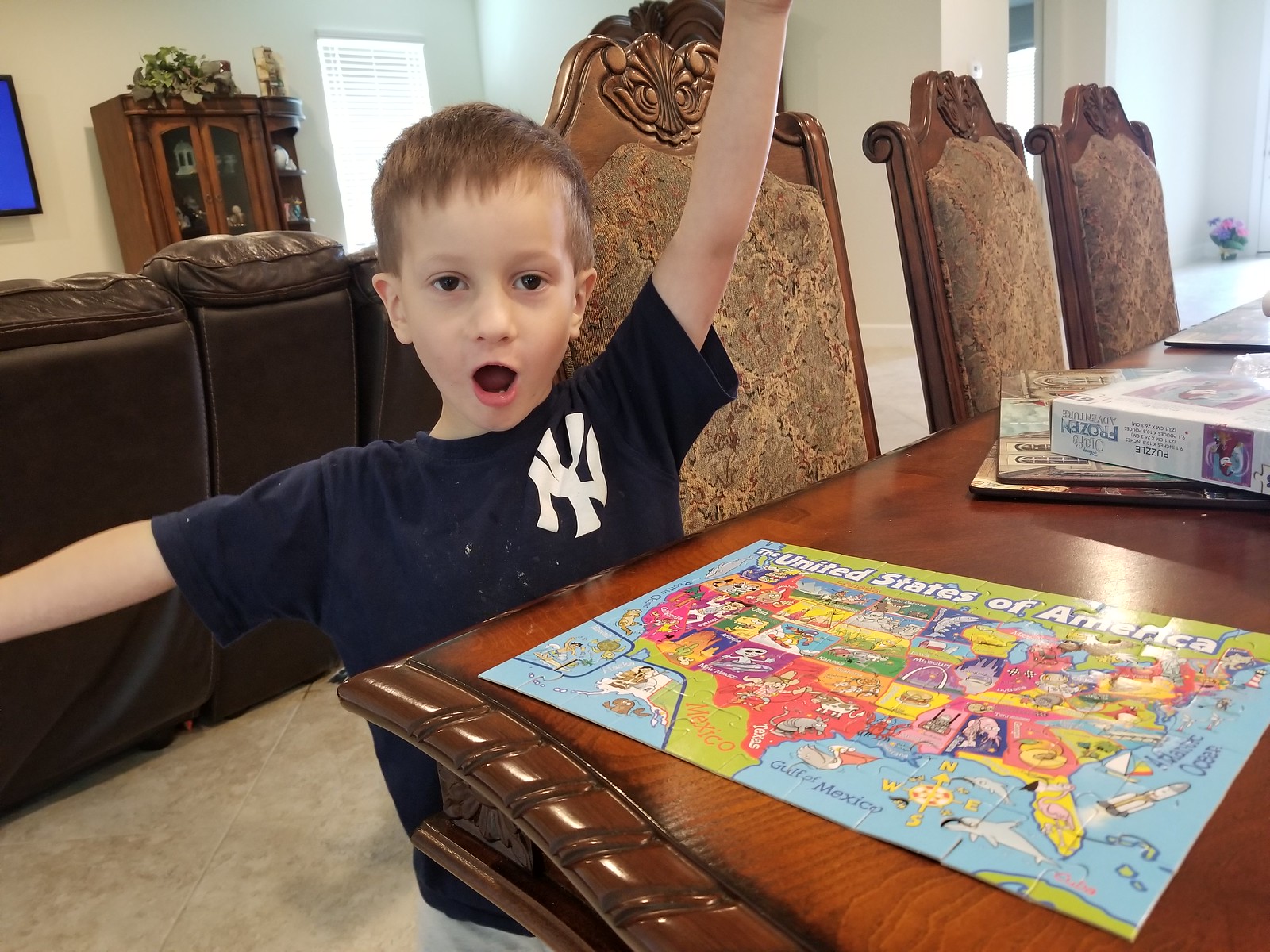 Alas, in the last six months or so though, since Cole turned 6, his interest in puzzles has diminished considerably. He is following down the same path as Derek and would rather watch a You Tube kids video or play a game on Xbox than pull out one of his many kid puzzles.